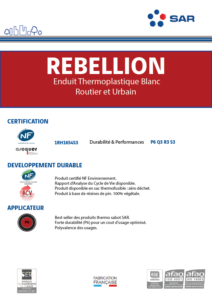 - Agripp’ 1RH1654S3 : rétro-réflexion R3, forte blancheur Q3 et anti-glissance S3 à 2 millions de passages de roues.