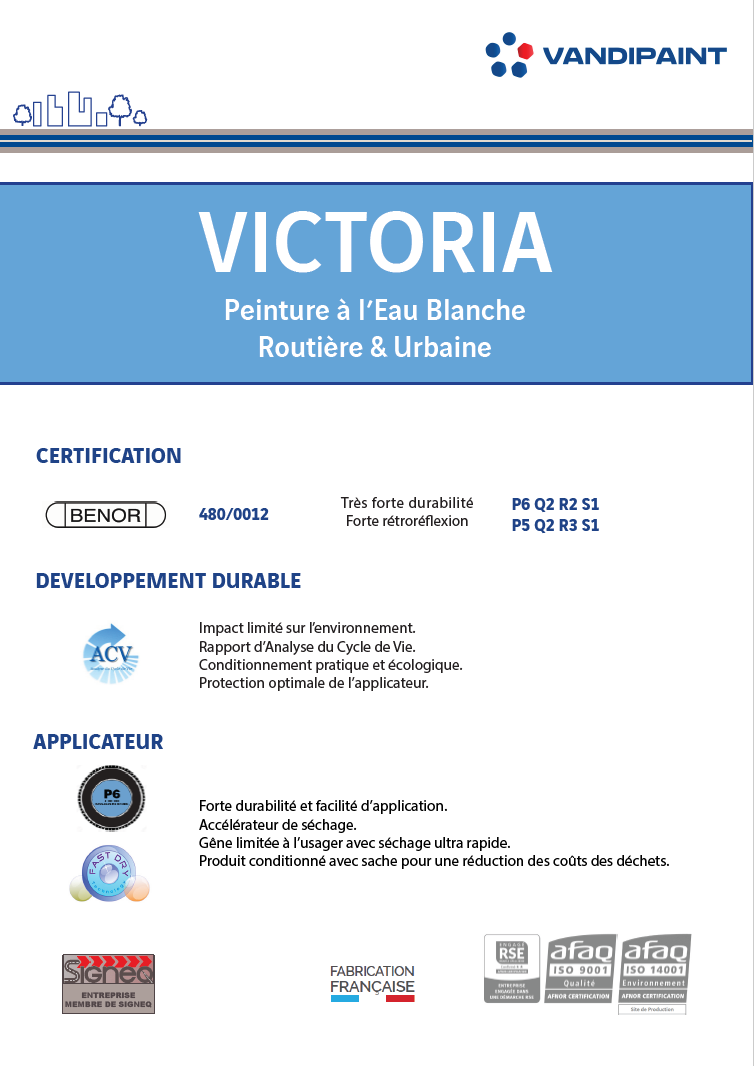 Victoria est une peinture à l’eau qui s’applique aussi bien en milieu routier qu’en milieu urbain.